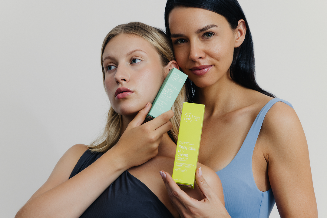 Graues R+ Zeichen auf schwarzem Hintergrund.