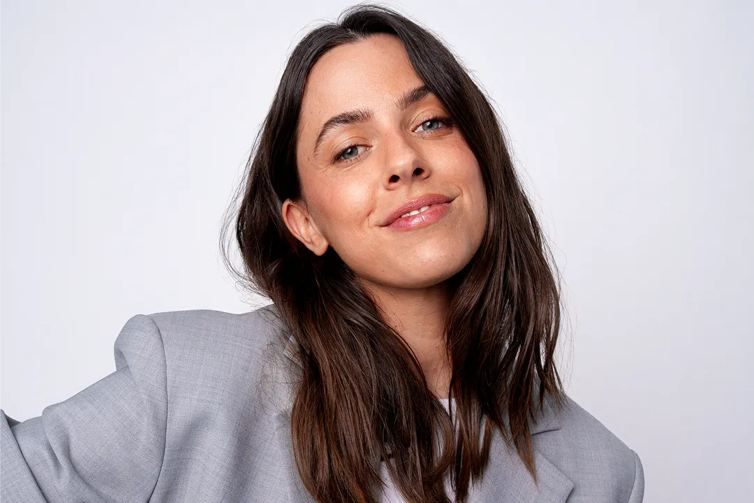 Graues R+ Zeichen auf schwarzem Hintergrund.